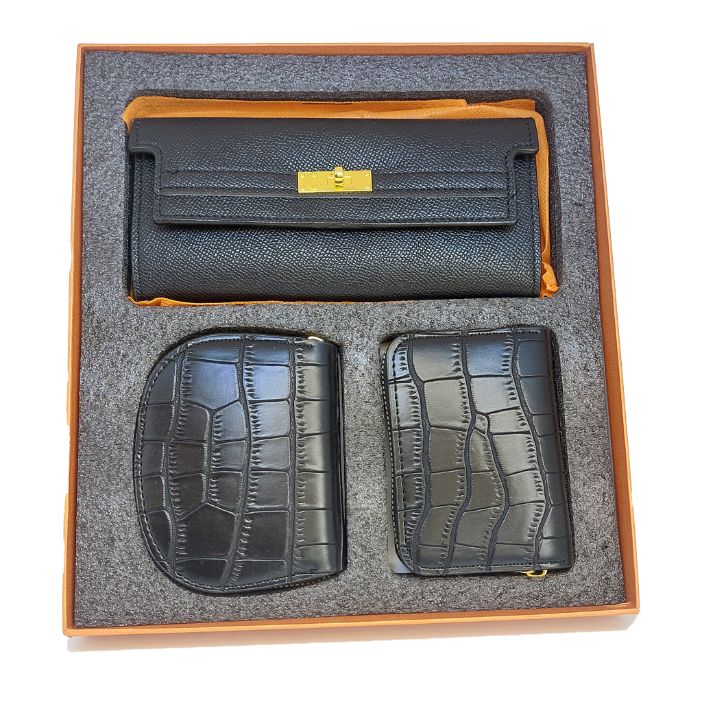 صُمم هذا الطقم للمرأة التي تعشق التفاصيل الدقيقة وتجمع في اختياراتها بين العملية والرقي المطلق. يتكون الطقم من ثلاث قطع أساسية مصنوعة من أجود أنواع الجلود المستوردة، مما يضمن لكِ ملمساً فاخراً واستدامة تدوم لسنوات.