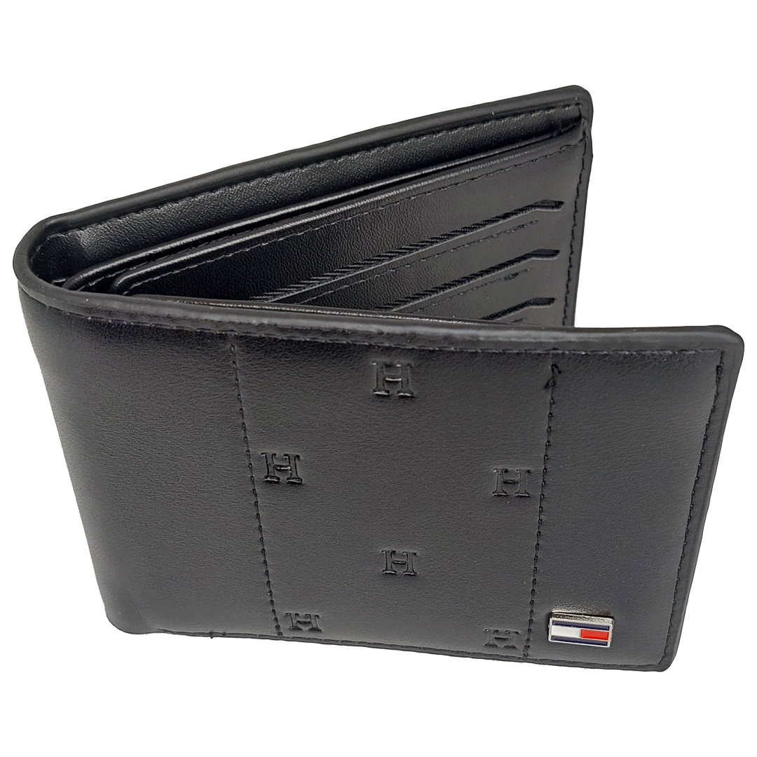 1. المحفظة الكلاسيكية: تتميز بتصميم “ثنائي الطي” مع شعار العلامة التجارية المحفور بدقة بارزة. تحتوي من الداخل على جيوب متعددة للكروت ومنظم للعملات الورقية ببطانة ناعمة.